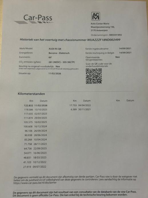 RSQ8 4.0TFSI 441kw 600ks 2021g.122800km.