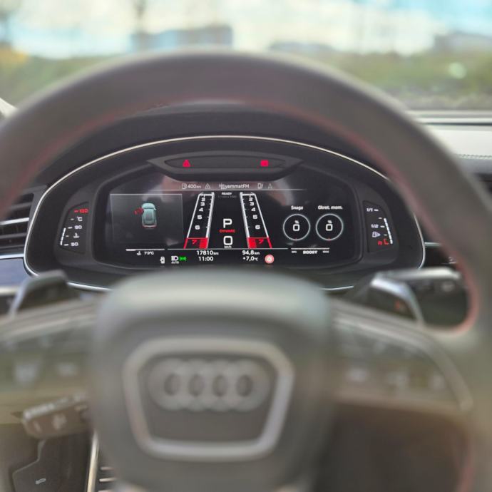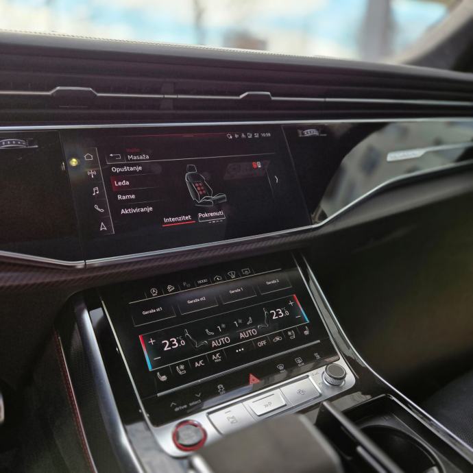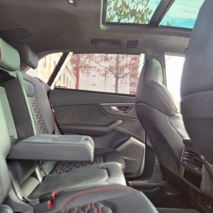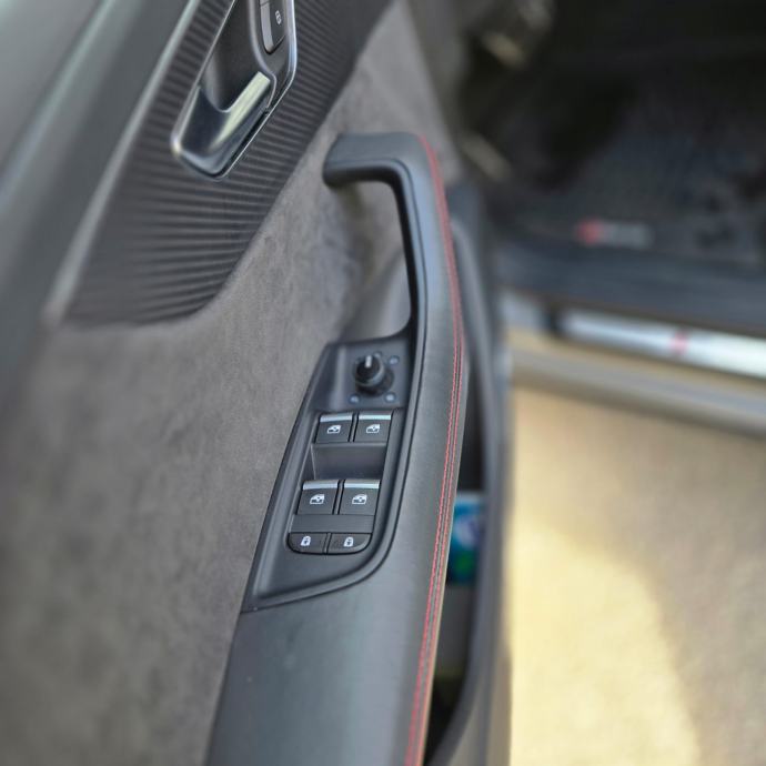 Full oprema, garažiran, grijani volan, hlađenje/grijanje/ventilacija siceva, masaža, skinuta blokada u tvornici Audi na 305 km/h (nadoplata 17.000 €), krov i bočne stranice sve u alcantari, zaokretni zadnji kotači, kuka, sve zašiveno crvenim koncem, autonomna vožnja (bez vozača) . Vozilo je u PDVu, cijena 125.000 + PDV