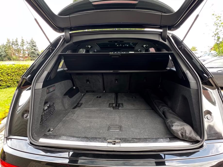 3. red sjedala, pojedinačno sklopiva sjedala (2 sjedala), bočni prozori na vratima s akustičnim staklom, paket pomoći plus, Audi sučelje za pametne telefone, vanjsko ogledalo električno podesivo, grijano i sklopivo s automatskim zatamnjenjem i memorijom, vanjsko ogledalo u boji karoserije, kočione čeljusti crveno lakirane, Business paket, crne krovne nosače, head-up zaslon, paket konturne/ambijentalne rasvjete (plus), grijani upravljač (koža - 3 kraka) s multifunkcijskim plusom, električno podesivi stup upravljača, aluminijski naplatci 10x22 (5 V-kraka, zvjezdasti dizajn, titan izgled, polirani u visokom sjaju), matrix LED prednja svjetla s laserskim svjetlom, metalik boja, crni paket stiliziranja plus, panoramski krov (prednji električni, fiksni straga), digitalni radio prijem (DAB), S sportska sjedala plus sprijeda, bočni zračni jastuci straga, presvlake/tapeciranje sjedala: Valcona koža s dijamantnim prošivanjem, električno podesiva prednja sjedala. podesivo (lijevo s memorijom), pomoćno grijanje, zatamnjena stražnja stakla (zatamnjena stakla), Black Plus paket stiliziranja, električno zaključavanje vrata, Bang & Olufsen zvuk,