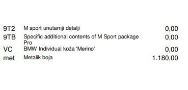 Vozilo sadrži jako puno opreme (26.990,00 € opreme, slika u oglasu sa cijenama iz ponude sa popustom) koja se u to vrijeme radi restrikcija mogla ugraditi na vozilo
