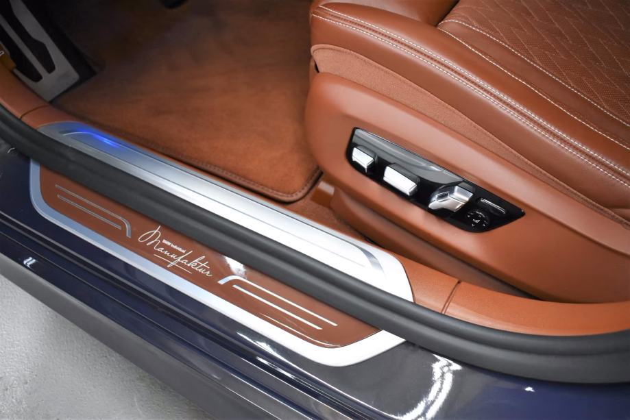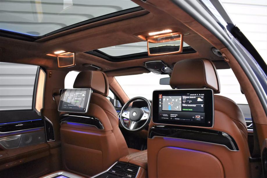 Svjetla za zavoje, M-Technic aerodinamički paket, Zračni jastuk na strani suvozača s deaktivacijom, Zračni jastuk na strani vozača/suvozača, Aktivni nasloni za glavu, Aktivna ventilacija stražnjih sjedala, Aktivna ventilacija prednjih sjedala, Ambijentalna rasvjeta Paket opreme: Connected Professional, Paket opreme: ConnectedDrive usluge, Vanjska/unutarnja ogledala s automatskim zatamnjivanjem, Električna vanjska ogledala. podesivi i grijani, LED pokazivači smjera, BMW Display Key, BMW Live Cockpit Professional, putno računalo, kočioni sustav: M Sport kočnice (obojene kočione čeljusti), pomoć pri kočenju, kontrolni zaslon s monitorom u boji (10,2 inča), dinamičko kočiono svjetlo, Dinamička kontrola prigušenja, Dinamička kontrola proklizavanja (DTC), komplet prve pomoći, sustav pomoći u vožnji: sustav upozorenja na frontalni sudar s funkcijom kočenja, sustav pomoći u vožnji: BMW kontrola gestama, sustav pomoći u vožnji: Driving Assistant Professional, sustav pomoći u vožnji: Kontrola iskustva vožnje, sustav pomoći u vožnji: Pomoćnik za duga svjetla, sustav pomoći u vožnji: Pomoć pri parkiranju, sustav pomoći u vožnji: daljinsko parkiranje (s tipkom za prikaz), sustav podvozja: Executive Drive Pro (stabilizacija naginjanja), daljinsko otključavanje vrata prtljažnika, hands-free sustav s USB sučeljem, vjetrobransko staklo (verzija: klima-komfort), podne prostirke od velura, osvjetljenje prostora za noge straga, osvjetljenje prostora za noge sprijeda, osvjetljenje prtljažnika, držači za čaše sprijeda i straga, automatsko upravljanje vratima prtljažnika, LED stražnja svjetla, paket inovacija, višenamjenski zaslon s instrumentima, instrumentna ploča presvučena kožom, Isofix nosači za dječje sjedalo, karoserija: 4 vrata, 4-zonska automatska klima s automatskom kontrolom recirkulacije, električno podesivi prednji komfor sjedala (s memorijom), sustav zračnih jastuka za glavu straga, sustav zračnih jastuka za glavu sprijeda, električni upravljač. podesivo, s memorijom, stražnja svjetla za čitanje, prednja svjetla za čitanje, aluminijski naplatci, kromirani otvor za zrak (Air Breather), kromirani ukras usisa zraka, zračna opruga s regulacijom razine, stražnji središnji naslon za ruke, ažuriranje modela, 6,6 litara - 430 kW V12 motor, navigacijski paket ConnectedDrive, filter čestica benzina (OPF), Park Distance Control (PDC) sprijeda i straga, Park Assistant Plus paket, električna parkirna kočnica, sustav personalizacije (Osobni profil), dugi međuosovinski razmak, sustav nadzora tlaka u gumama, kamera za vožnju unatrag, niske emisije prema standardu emisija Euro 6d-TEMP, grijane mlaznice za pranje vjetrobranskog stakla, bočni zračni jastuci, stražnji bočni zračni jastuci, prednji bočni zračni jastuci, servisni sustav: Amazon Alexa, servisni sustav: BMW Intelligent Personal Assistant, servisni sustav: Intelligent Emergency Call uključujući TeleServices, sigurnosni sustav Active Protection, konfiguracija sjedala: 5 sjedala, presvlaka/tapeciranje sjedala: ekskluzivna nappa koža (prošireni opseg), grijana prednja sjedala, automatska vrata s mekim zatvaranjem, električna roleta za stražnje i bočne prozore, tipka start-stop, start/stop sustav (funkcija), 12V utičnica u središnjoj konzoli i prtljažniku/terenskom prostoru (4-smjerni), telefon u stražnjem dijelu, univerzalni otvarač garažnih vrata, laminirano staklo (verzija: klima-komfort), sigurnosni trokut, zatamnjeno toplinski izolacijsko staklo, kromirana ukrasna rešetka