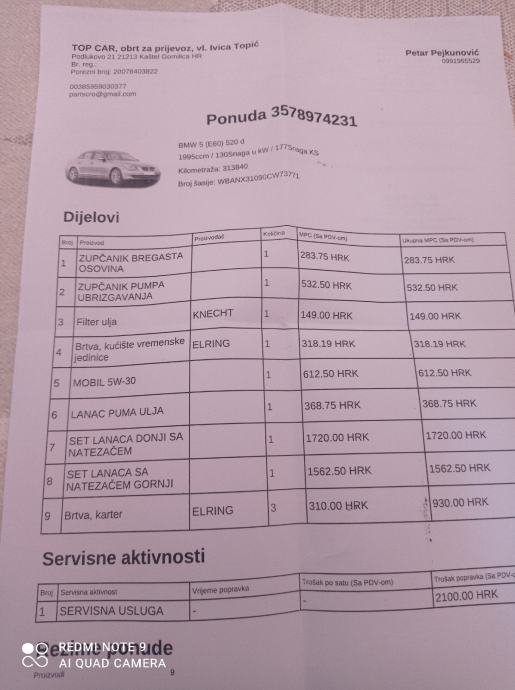 I REDOVNO PO INTERVALIMA MIJENJANO ULJE-FILTERI I OSTALI POTROSNI DIJELOVI,