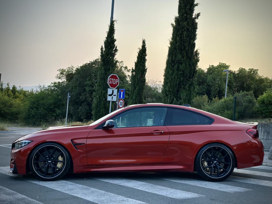 BMW M4 DKG u predivnoj Sakhir Orange Metallic boji, LCI look, keramika, carbon, samo 58.000 km – BEZ ULAGANJA