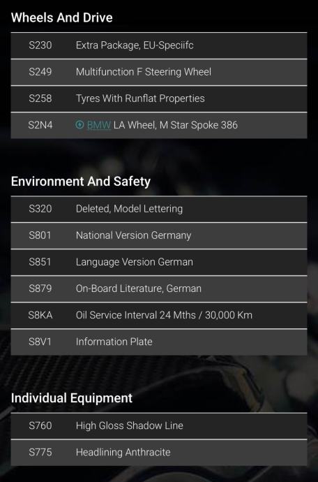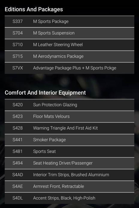 (Detaljan popis opreme dostupan je na mdecoder linku: https://www.mdecoder.com/decode/wba1c11090vu93242)