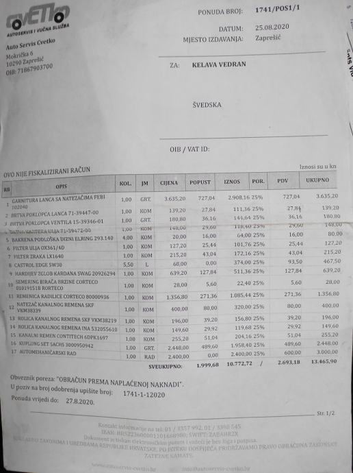 U auto je ulozeno cca 2000kn u zadnje dvije godine sto potvrđuju računi