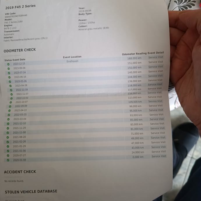 U inozemstvu servisiran u ovlaštenom servisu do 170000 km