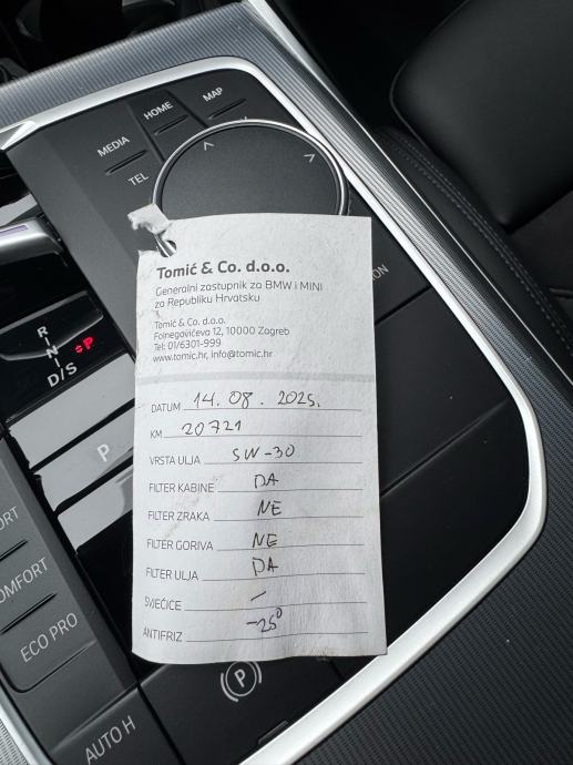 Zadnji servis ulja i filtera rađen je u BMW-u na 20.721 km