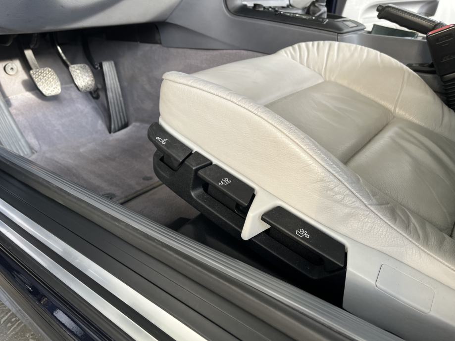 Exclusive oprema - full električni krov, dvojna klima, airbag - vozač, suvozač, bočni, putno računalo, grijana sjedala, ogledala i prozori na struju. Orient Blau - metalik plavo-ljubičasta boja sa sivom kožom unutrašnjosti.
