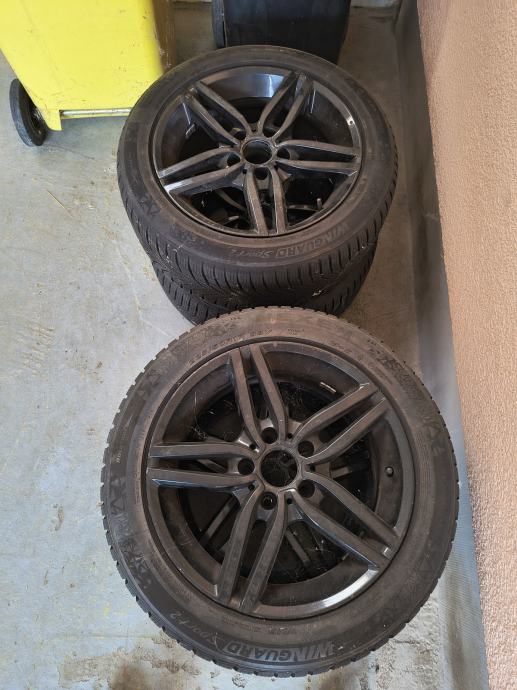 Nove zimske gume na crnim aluminijskim felgama i takodjer nove zimske gume na orginal BMW aluminijskim felgama.
