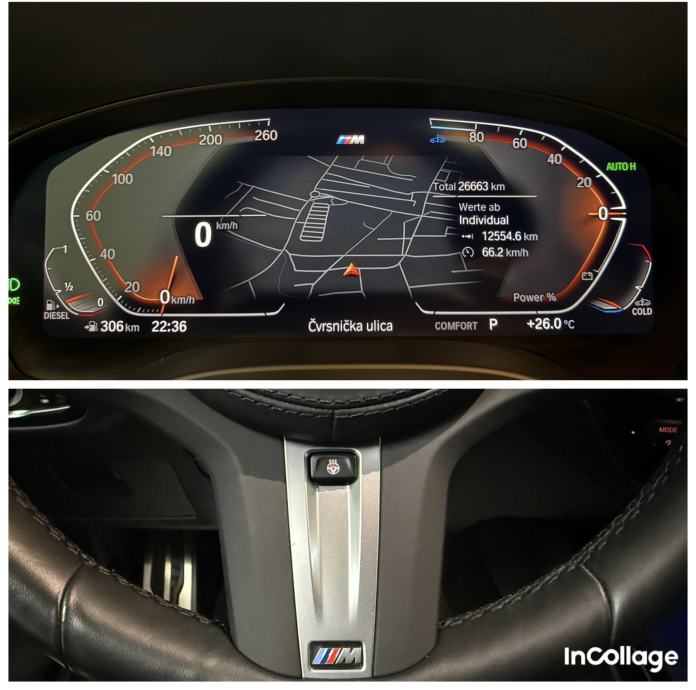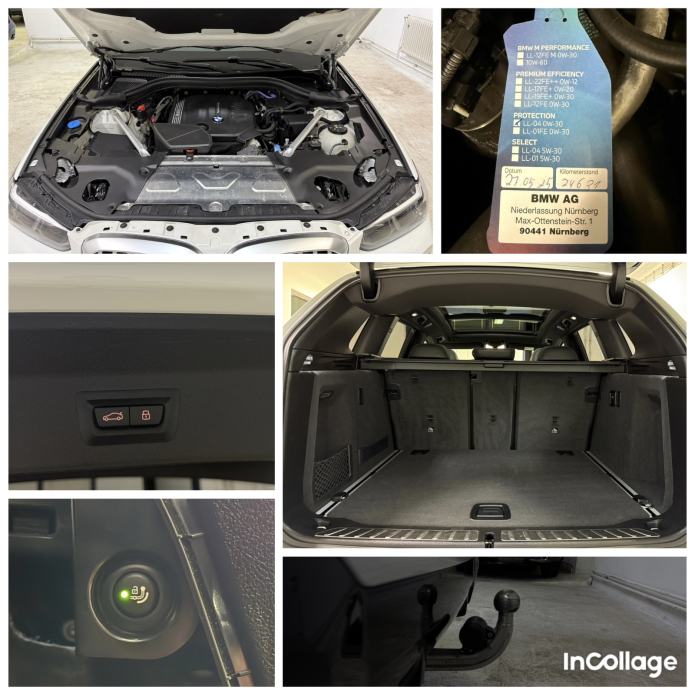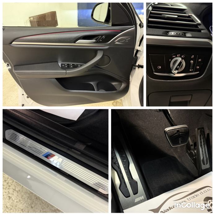 OPREMA: **M-SPORT PAKET**, **xDrive20d (4X4 POGON)**, **BOJA VOZILA: BIJELA**, HYBR.DIESEL 140 kW (190 KS), 1.995 cm3, **2 X ALU: LJETNI SET ORIGINAL M-SPORT ALU FELGE SA GUMAMA + ZIMSKI SET ORIGINAL BMW ALU 18'' ZOLLA ALU FELGE SA GUMAMA**, **AUTOMATSKA KLIMA 3 ZONE**, **AUTOMATSKI MJENJAČ 8 BRZINA**, **KUKA ZA VUČU – POTPUNO SAMO ELEKTRIČNO IZVLAČENJE/UVLAČENJE (BEZ UPOTREBE RUKU)**, **AUTOMATSKA KLIMA 3 ZONE**, **POMOĆ PRI PARKIRANJU: PREDNJI I STRAŽNJI PARKING SENZORI SA DINAMIČKIM SMJERNICAMA + 360 STUPNJEVA KAMERA + PARK ASSIST**, PREDNJI/STRAŽNJI/BOČNI ZRAČNI JASTUCI, **FULL KOŽNA RUPIČASTA SJEDALA (PERFPRIRANA SENSATEC KOŽA) + GRIJANJE SJEDALA + PODESIVA SJEDALA PO VISINI/DUBINI + DODATNO PRODUŽETAK SJEDALA POTPORE ZA NOGE + LUMBALNA POTPORA + SPORTSKA SJEDALA + SKLOPIVO SJEDALO SUVOZAČA + DJELJIVA STRAŽNJA KLUPA SA NASLONOM ZA RUKE I DRŽAĆEM ZA PIĆE**, ABS, **KONTROLA UDALJENOSTI OD VOZILA**, **TEMPOMAT**, **AMBIJENTALNA RASVJETA U UNUTRAŠNJOSTI VOZILA SA ODABIROM VIŠE BOJA = SVA VRATA SVJETLE, ARMATURA**, **LED SVJETLO UNUTRAŠNJOSTI**, **CRNO NEBO – TAPECIRUNG**, **ANDROID AUTO/APPLE CARPLAY/12V UTIČNICE/USB/BLUETOOTH/WLAN/WIFI HOTSPOT/RADIO DAB/HIFI SUSTAV ZVUČNIKA**, PREDNJI KOŽNI NASLON ZA RUKE SA PRETINCEM ZA SKLADIŠTENJE STVARI, **AUTO-HOLD FUNKCIJA ZADRŽAVANJA VOZILA NA UZBRDICI/NIZBRDICI/RAVNOJ POVRŠINI**, PUTNO RAČUNALO, **MULTIFUNKCIONALNI M-SPORT KOŽNI UPRAVLJAČ + F1 MJENJANJE BRZINA + GRIJANJE UPRAVLJAČA + SERVO + PODESIVI UPRAVLJAČ PO VISINI/DUBINI**, *FULL LED ADAPTIVNA BMW LED SVJETLA – FAROVI**, **LED DNEVNA SVJETLA**, **LED STRAŽNJA SVJETLA**, ASISTENT ZA DUGA SVJETLA, AUTOMATSKA SVJETLA, SVJETLA ZA MAGLU, DUGA SVJETLA BEZ ZASLJEPLJIVANJA, **SENZOR SVJETLA + SENZOR ZA KIŠU**, KROVNI NOSAČI OD SATENSKOG ALUMINIJA CRNE BOJE, ELEKTRIČNI PODIZAČI PROZORA X 4, ELEKTRIČNO PODEŠAVANJE I SKLAPANJE RETROVIZORA, **ELEKTR. HECKKLAPPE = ELEKTRIČNO PODIZANJE I SPUŠTANJE PRTLJAŽNIKA + OTVARANJE PRTLJAŽNIKA NA SENZOR POKRETA NOGE**, ELEKTRIČNI IMOBILIZATOR, ESP, ELEKTRIČNA ''RUČNA'' PARKING KOČNICA, HANDSFREE, KONTROLA GLASA, **UPOZORENJE OGRANIČENJA BRZINE**, **AUTOMATSKO ZATAMNJENJE UNUTARNJEG OGLEDALA**, ISOFIX SJEDALA ZA DJECU, UPOZORENJE NA UMOR VOZAČA – PREDUGA VOŽNJA (POZIV ZA PAUZU), **VELIKI NAVIGACIJSKI SUSTAV SA KARTAMA EUROPE**, **ASISTENT ZA HITNO KOČENJE VOZILA**, SUSTAV HITNIH POZIVA SOS, **PANORAMSKI KROV NA IZVLAČENJE + ŠIBER + ELEKTRIČNA ZAVJESA + CRNO STAKLO + CRNO NEBO U UNUTRAŠNJOSTI TAPECIRUNG**, **ZATAMNJENA STAKLA**, KONTROLA PRITISKA TLAKA U GUMAMA, **KEYLESS GO = SUSTAV ULASKA U VOZILO BEZ KLJUČA (PALJENJE VOZILA NA GUMB, OTKLJUČAVANJE I ZAKLJUČAVANJE VOZILA NA SVE 4 BRAVE NASLONOM DLANA) + BRAVE SA LED AMBI RASVJETOM I PROJEKCIJOM LED SVJETLA NA VRATIMA**, SOUNDSYSTEM, **M SPORTSKO PODVOZJE/OVJES VOZILA**, **SPORTSKI PAKET**, START/STOPP-AUTOMATIK, **KONTROLA PRAĆENJA TRAKA I KONTROLA PROKLIZAVANJA VOZILA ASR**, **FULL VIRTUALNI COCKPIT = POTPUNO DIGITALNA PLOČA S INSTRUMENTIMA (BMW LIVE COCKPIT PROFESSIONAL)**, CENTRALNO ZAKLJUČAVANJE VOZILA, 2 KLJUČA, KONTROLA PERFORMANSI, KOMFORT PAKET, M SPORT PAKET, VELIKI PRTLJAŽNIK + MREŽA ZA PRTLJAŽNIK, TEPISI OD VELURA, ACTIVE GUARD, TELESERVICES, CONNECTED DRIVE SERVICES, CONNECTED PACKAGE PROFESSIONAL, M AERODINAMIČKI PAKET, HOCHGLANZ SHADOW LINE – SJENA VISOKOG SJAJA, **AKTIVNA ZAŠTITA PJEŠAKA**, **ODABIR MODOVA VOŽNJE: 1. SPORT, 2. COMFORT, 3. ECO PRO**, **M-SPORT UKRASNE LAJSNE/OZNAKE NA VOZILU, PRAGOVIMA,NA SPORTSKIM KROMIRANIM PAPUČICAMA GASA/KOČNICE/NASLONA ZA LIJEVU NOGU (M UNUTARNJE OBLOGE OD ALUMINIJA)**, M KROVNA OBLOGA ANTRACIT, **PAKET UNUTARNJIH I VANJSKIH RETROVIZORA**, COC DOKUMENT - CERTIFIKAT PROIZVOĐAČA VOZILA, UREDNA BMW DIGITALNA SERVISNA KNJIŽICA + NOVI SERVIS + BMW JAMSTVO DO 2028. GODINE, NISKI ZAGAĐIVAČ U SKLADU SA STANDARDOM EMISIJE EURA 6 itd...itd...