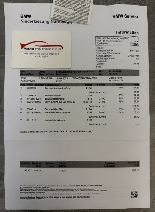 • NOVI SERVIS: 27.05.2025 (24.631 KM) + RAČUN SERVISA !