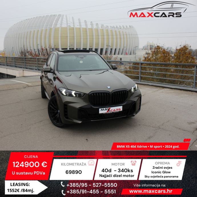 BMW X5 xDrive 40d M sport•Zračni ovjes•Sky panorama•Iconic Glow•AR•PDV
