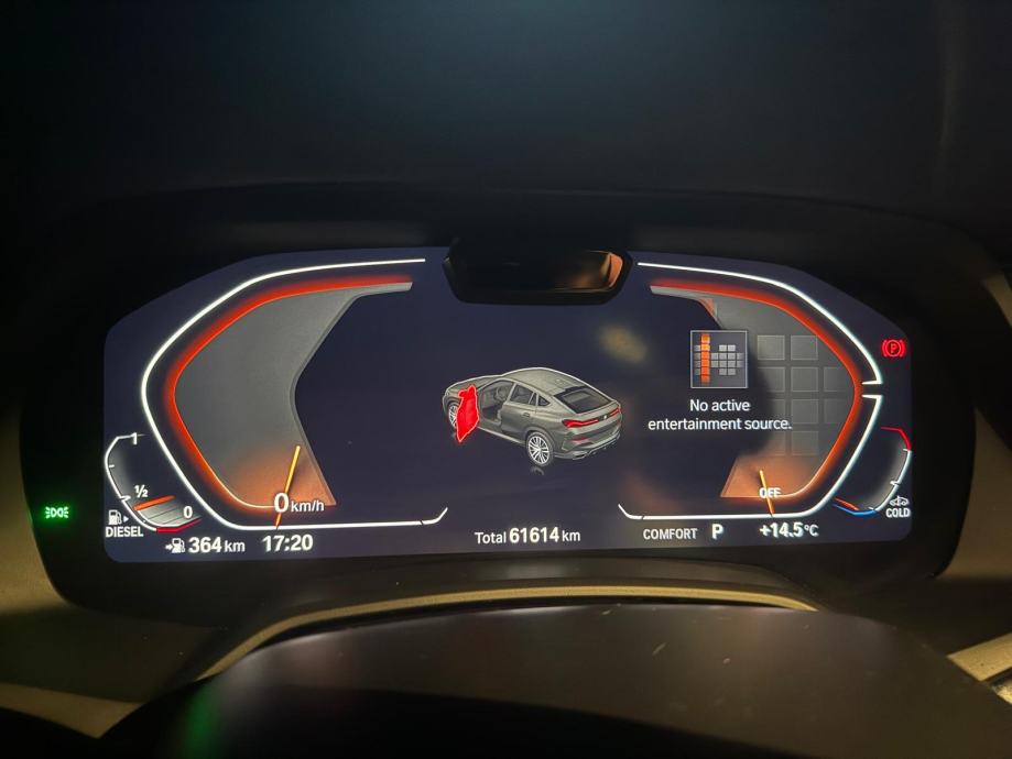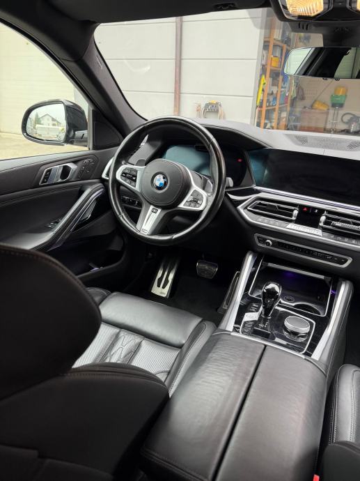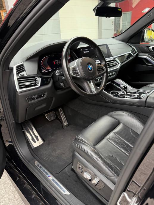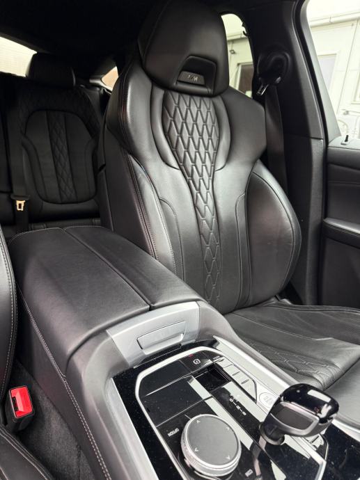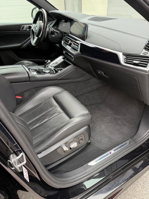 BMW X6 xDrive30d, diesel 4x4 G06 (09/2019 - ), automatski sportski mjenjač, M Multifunkcionalna sjedala za vozača i suvozača, Aktivno prozračivanje sjedala sprijeda, HUD Head-up display, Metalik boja, Komforan ulazak i izlazak iz vozila, Kuka za prikolicu električno preklopiva, Podne prostirke velur, Hi-Fi stereo sistem, BMW Individual unutrašnjost Piano finish Black, Set za popravak guma, Komforni paket grijanja sprijeda, BMW display key, Stakleni panoramski pomični krov električno namjestiv, BMW Individual High gloss Shadow Line, Individual koža "Merino", Driving Assistant Professional, Dodatno zatamnjenje zadnjih i bočnih stakala i zadnjeg stakla, BMW svjetleća prednja maska, M BMW naplatci od lake legure - 22, Double-spoke style 742-MT, Držač za čaše klimatizirani, M sportski paket: M sport ispušni sustav, adaptivno M podvozje, M sportski upravljač, M Aerodinamični paket, visoki sjaj Shadow Line, Individual, unutarnja obloga krova, Antracit, Individual.