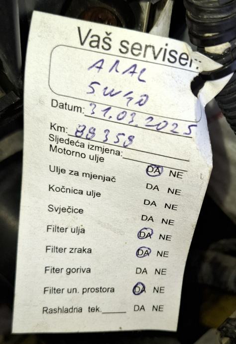 Automobil je kupljen nov u Hrvatskoj, nije udaran, u jako dobrom stanju, na njemu su četiri zimske gume, na 83000 km napravljen veliki servis, na 88000 km mali servis, tako da je trenutačno bez ulaganja.