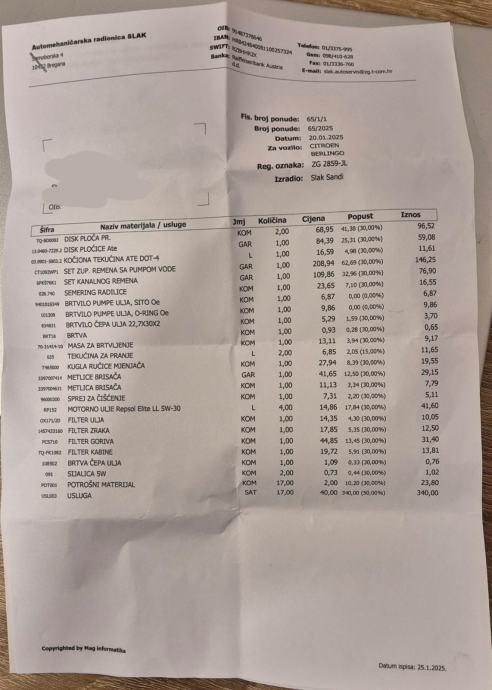 Na trenutnoj kilometraži napravljen je veliki servis (izmjena seta distribucije s pumpom vode), i stavljene sve 4 nove gume.