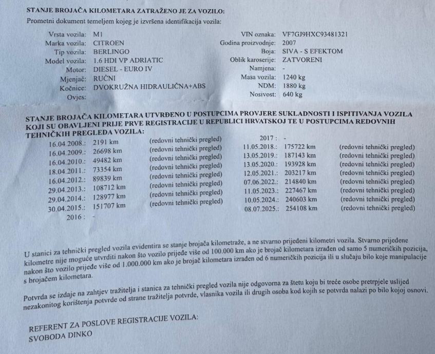 Citroën Berlingo 1,6 HDi HR auto 258tkm orig. Očuvan