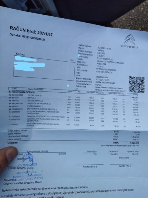 ZADNJI SERVIS NAPRAVLJEN U OVLAŠTENOM SERVISU PRED PAR DANA NA 121 050 KILOMETARA