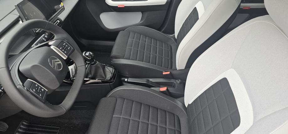 Set za krpanje gume, Vanjski električni retrovizori, Mehanička ručna kočnica, Vanjski retrovizori u crnoj boji, Servo upravljač podesiv po visini i dubini, 6 zračnih jastuka, Utičnica 12 V u prvom redu, 2 ISOFIX sustava (2x na bočnim stražnjim sjedalima), 1x priključak USB (tip C) za punjenje u prvom redu, Citroën Head-up display na LCD zaslonu, Ovjes Citroën Advanced Comfort®, Plava ukrasna letvica na gornjem dijelu kontrolne ploče te na prednjim, Sustav za automatsko kočenje u slučaju opasnosti pomoću kamere (Active i stražnjim vratima Safety Brake)