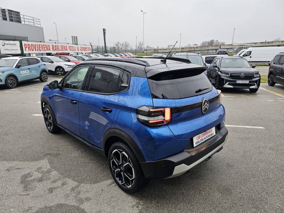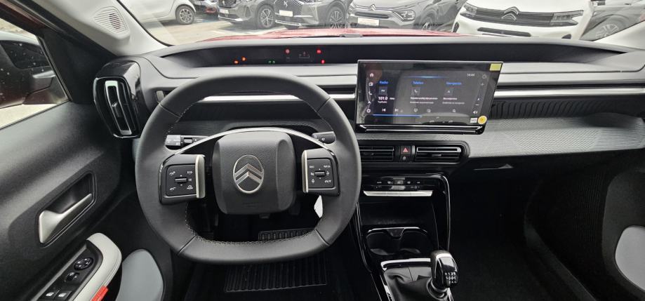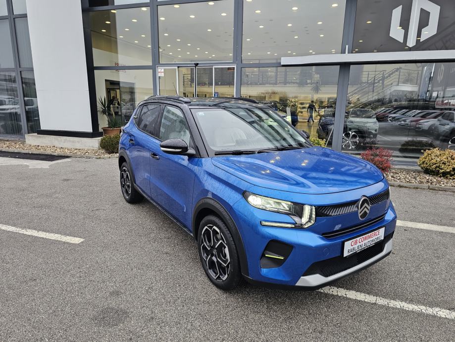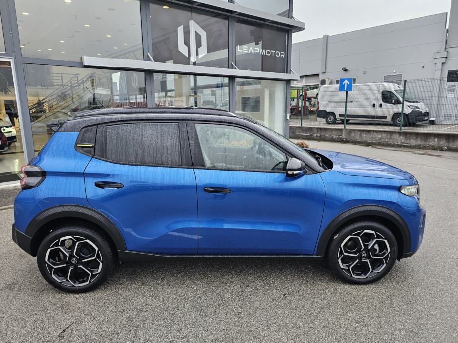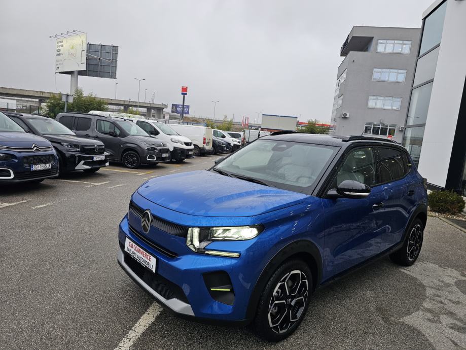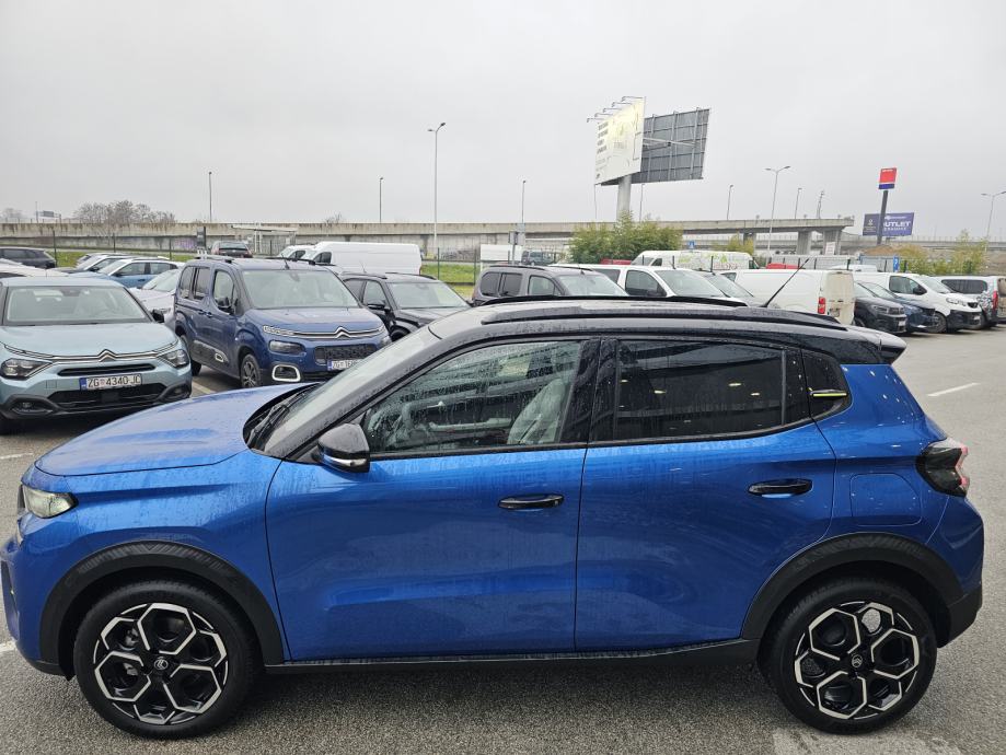 Set za krpanje gume, Vanjski električni retrovizori, Mehanička ručna kočnica, Vanjski retrovizori u crnoj boji, Servo upravljač podesiv po visini i dubini, 6 zračnih jastuka, Utičnica 12 V u prvom redu, 2 ISOFIX sustava (2x na bočnim stražnjim sjedalima), 1x priključak USB (tip C) za punjenje u prvom redu, Citroën Head-up display na LCD zaslonu, Ovjes Citroën Advanced Comfort®, Plava ukrasna letvica na gornjem dijelu kontrolne ploče te na prednjim, Sustav za automatsko kočenje u slučaju opasnosti pomoću kamere (Active i stražnjim vratima Safety Brake)