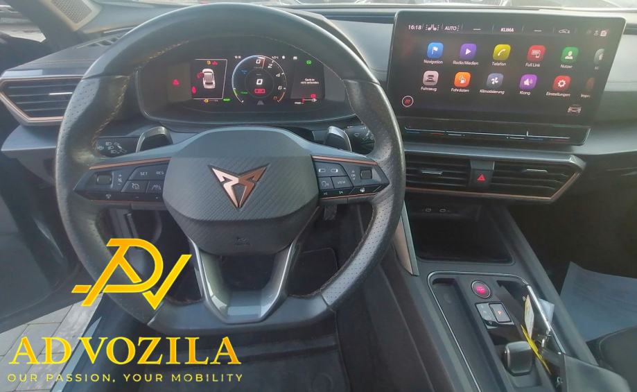 7 zvučnika, zračni jastuk suvozača koji se može deaktivirati, zračni jastuk vozača/suvozača, akustična zaštita pješaka, vanjsko ozvučenje (e-sound / AVAS), ambijentalno osvjetljenje Smart Ambient Light, kontrola proklizavanja (ASR), električni vanjski retrovizori. podesivi, grijani i sklopivi sa spuštanjem retrovizora i svjetlom dobrodošlice, LED pokazivači smjera integrirani u vanjsko retrovizor, Bluetooth sučelje s integriranim hands-free sustavom, crni krovni nosači, visoki sjaj, dvotonska sirena, pragovi (aluminijski) sprijeda, osvijetljeni, elektronski. Blokada diferencijala (XDS), sustav pomoći vozaču: odabir profila vožnje (CUPRA Drive Profile), sustav pomoći vozaču: sustav pred sudarom, električni podizači prozora sprijeda + straga s prekidačem za udobnost, ukrasne lajsne prozora crne boje visokog sjaja, poklopac prtljažnika / roleta, potpuna LED stražnja svjetla s dinamičkom svjetlosnom trakom (Infinite Light), hibrid 150 kW (motor 1,4 litre - 110 kW TSI), Isofix nosači za dječje sjedalo na stražnjem sjedalu, karoserija: 5 vrata, Climatronic 3-zonska klima, digitalna ploča s instrumentima (virtualni kokpit), sustav zračnih jastuka za glavu, kabel za punjenje s utikačem Schuko, kabel za punjenje s utikačem tipa 2 (Mode 3), sjedalo s lumbalnom potporom sprijeda lijevo, podesivo, sjedalo s lumbalnom potporom sprijeda desno, podesivo, paket svjetla i vidljivosti, LM naplatci, stražnji središnji naslon za ruku, prednja središnja konzola s središnjim naslonom za ruku, držač za čaše, kutija za odlaganje i stražnji ventilacijski otvor, Sustav poziva u nuždi, filtar čestica benzina (OPF), električna parkirna kočnica, Prioritet, digitalni radio prijem (DAB+), međuosovinski razmak 2680 mm, set za popravak guma, naslon stražnjeg sjedala djeljiv/preklopiv (1/3-2/3), nasloni stražnjih sjedala sklopivi s daljinskim otpuštanjem u prtljažniku, niske emisije prema standardu emisija Euro 6d, bočni zračni jastuk, prednji središnji zračni jastuk zračni jastuk), stražnji bočni prozori i stražnje staklo zatamnjeni, prednje lijevo sjedalo podesivo po visini, prednje desno sjedalo podesivo, presvlaka za sjedalo / presvlake: tkanina, lijevi štitnik za sunce s ogledalom (osvijetljen), prednja sportska sjedala, start/stop sustav, utičnica (12V priključak) sprijeda, 230V utičnica u prtljažniku, USB priključci za punjenje (2-smjerni, tip C) za 2 red sjedala, prednje USB sučelje (2-smjerno, tip C), ušice za vezivanje u prtljažniku/prtljažniku, sustav upozorenja za sustav sigurnosnih pojaseva, Toplinska izolacija ostakljenja