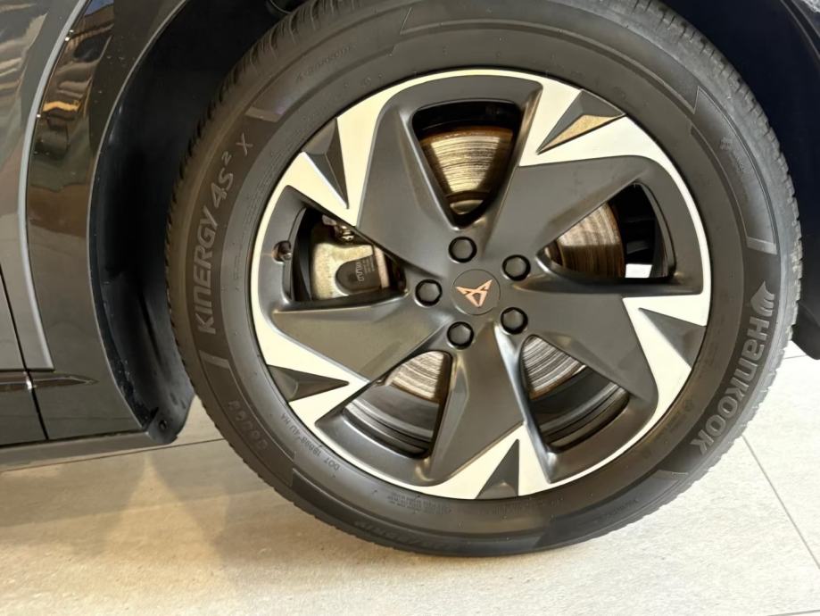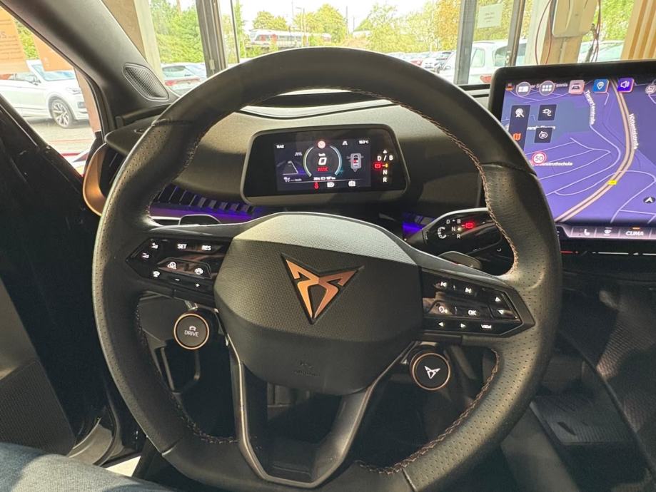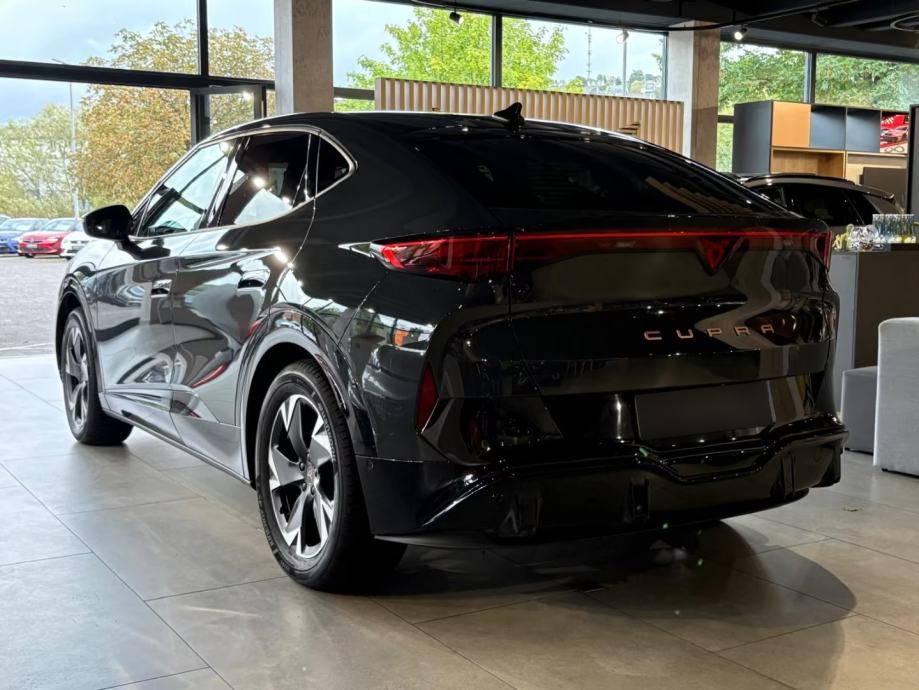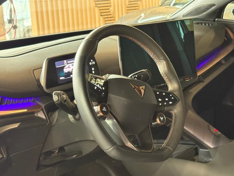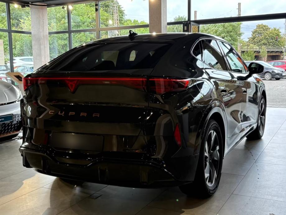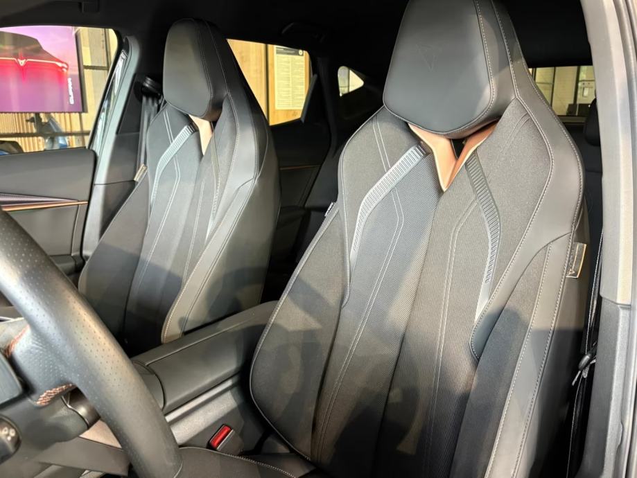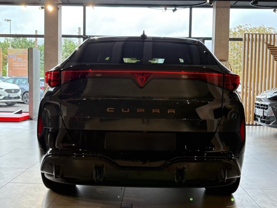 Ostalo: Kontrola proklizavanja (ASR), naslon stražnjeg sjedala djeljiv/preklopiv (1/3-2/3), električno podesivi, grijani i preklopivi vanjski retrovizori sa spuštanjem retrovizora i svjetlom dobrodošlice, sustav za hitne pozive, kamera za vožnju unatrag, full LED prednja svjetla, prednje USB sučelje (2-smjerno, tip C), električna vrata prtljažnika/poklopac motora. upravljanje (otvaranje + zatvaranje, kontrolirano senzorima), prednji središnji bočni zračni jastuk (Central Airbag), Kessy Advanced sustav zaključavanja/pokretanja, Isofix nosači za dječje sjedalice na suvozačevom sjedalu i stražnjem sjedalu (uključujući i-Size dječje sjedalice), grijani upravljač (CUPRA Supersport, koža) s multifunkcijom i funkcijom prekidača, stražnja svjetla s punom LED trakom (Infinite Light), akustična zaštita pješaka, vanjski zvuk (e-sound / AVAS), standardni međuosovinski razmak, HV baterija 82 kWh bruto / 77 kWh neto, sustav pomoći vozaču: Pomoćnik za održavanje voznog traka Plus uključujući Pomoć pri putovanju, Pomoć u nuždi i Pomoć u prometnim gužvama, natpis na vratima prtljažnika u bakrenoj boji, audionavigacijski sustav s dodirnim zaslonom u boji 15, sustav pomoći vozaču: Pomoć pri parkiranju na daljinu (RPA), presvlaka/tapeciranje sjedala: tkanina Soul Black, unutarnje ručke vrata u bakrenoj boji, aluminijski naplatci, Cupra Connect plus mobilne online usluge, ABS, sustav zračnih jastuka za glavu, nadzor tlaka u gumama, bočni zračni jastuk, LED ambijentalna rasvjeta, senzor za svjetlo i kišu, bočni zračni jastuk vozača/suvozača, prednja središnja konzola sa središnjim naslonom za ruke, držač za čaše, pretinac za odlaganje i stražnji otvori za zrak, električna parkirna kočnica s funkcijom automatskog zadržavanja, Full Link (MirrorLink, Apple CarPlay i Android Auto), USB priključci za punjenje (2-smjerni, tip C) za 2. red sjedala, osvjetljenje prtljažnika (LED), bočna stakla iz 2. reda sjedala i stražnje staklo zatamnjeno (Privacy Glass), 12V utičnica u prtljažniku, automatski tempomat (ACC/PCC) s prediktivnim tempomatom, zračni jastuk suvozača se može deaktivirati, Bluetooth audio streaming, Bluetooth sučelje s hands-free sustavom, 3-zonska klima-uređaj, protuprovalni alarmni sustav s nadzorom unutrašnjosti i zaštitom od odvlačenja, elektromotor od 210 kW (nastavak 89 kW), elektronički. Kontrola stabilnosti (ESC), odabir profila vožnje (CUPRA Drive Profile), električni podizači prozora sprijeda i straga s funkcijom udobnosti, pomoć pri dugim svjetlima, LED rasvjeta prostora za noge, indukcijsko punjenje za pametni telefon, unutarnji retrovizor s automatskim zatamnjivanjem, inteligentna pomoć pri parkiranju (IPA), inteligentna pomoć pri parkiranju uključujući trenirano parkiranje, digitalna instrument ploča (virtualni kokpit), stražnji središnji naslon za ruke, detekcija umora, aluminijske papučice, sustav za sprječavanje sudara, progresivni upravljač, digitalni radio prijem (DAB+), uređaj za brzo punjenje (CCS utičnica za punjenje), servisni sustav: inteligentno umrežavanje vozila (Car2X), podešavanje visine sjedala, podešavanje visine vozačevog sjedala, sportska školjkasta sjedala sprijeda, pomoć pri mrtvom kutu s pomoći pri prometu straga, pomoć pri promjeni trake i upozorenje na izlazak, sustav nadzora područja (Front assist) s funkcijom kočenja u nuždi u gradu, prepoznavanje prometnih znakova