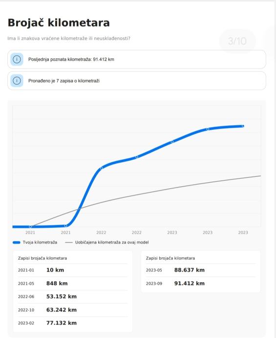 - Prijeđeni kilometri