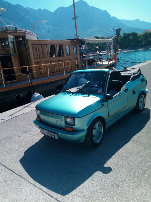 Fiat 126 zvani peglica,malo me podašišali,našminkali zelenkasto,obukli u pravu kožu,obuli mi i borbetice,i kako vidite na slici,