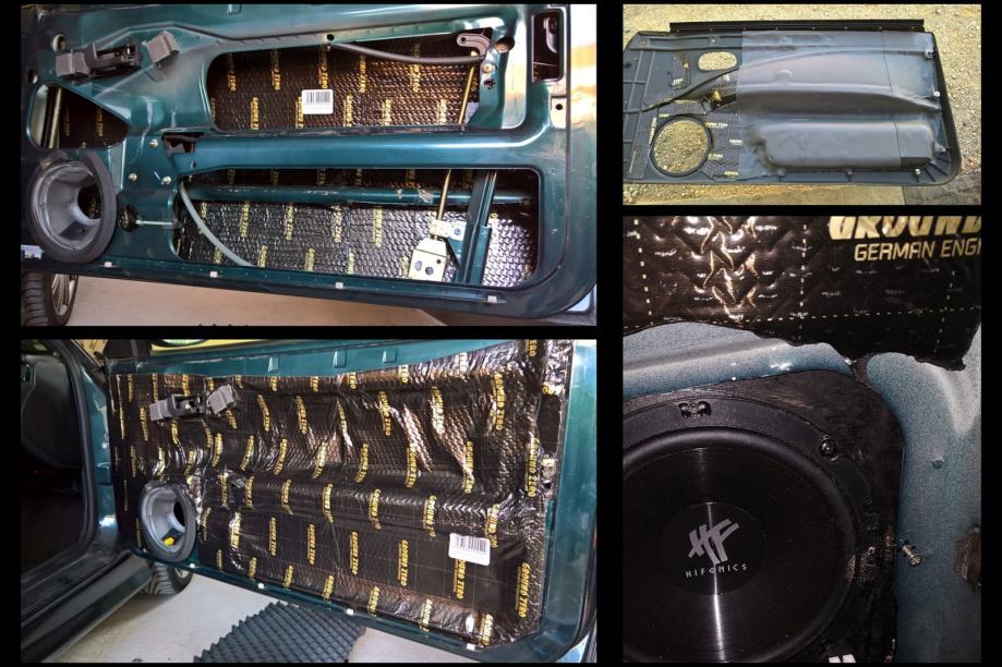 - audio Alpine CDE-178BT (cd /usb/bt receiver, top model u single-din ponudi), prednji zvučnici Hertz ESK 165L.5 (woofer u vratima + tweeter u tabli), stražnji zvučnici Hifonics Titan TS 6.2W (samo wooferi, sa lowpass filterom), dampiranje karoserije i tapecira.