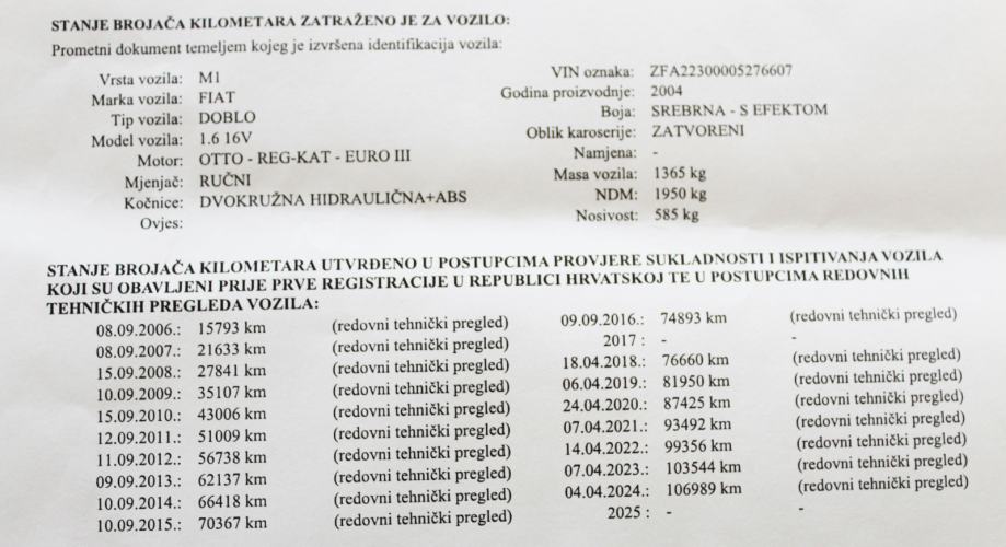 Jamstvo ispravnosti stanja broja prijeđenih kilometara uz službenu ovjeru tvrtke