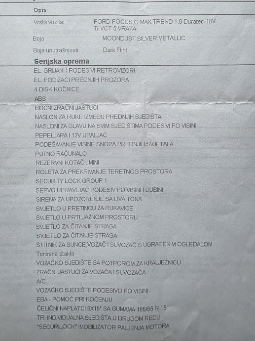 Prodajem rabljeno vozilo: Ford C-Max