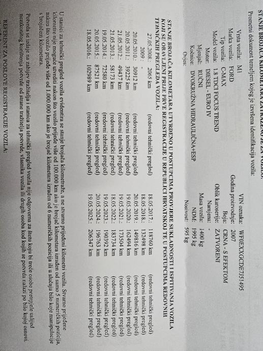 VOZILO NIJE IZ UVOZA, KUPLJENO NOVO U HRVATSKOJ (POTVRDA O KM SA STANICE ZA TEHNIČKI PREGLED).