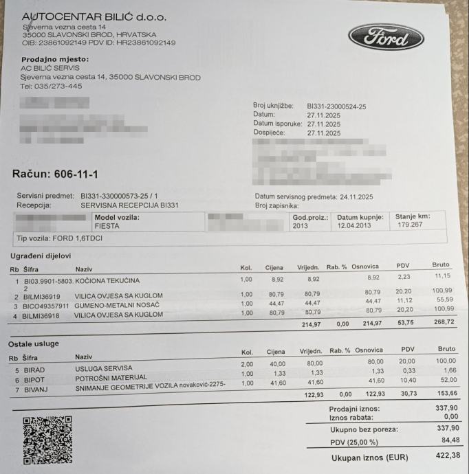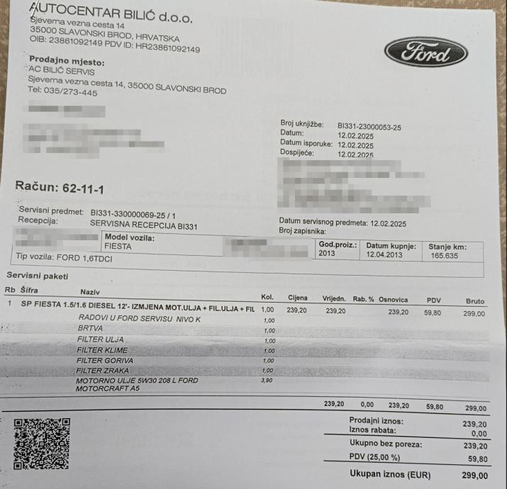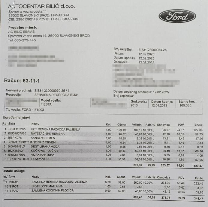 - Ford Fiesta 1.6 TDCI 2013 – veliki i mali servis odrađen u ovlaštenom Ford servisu