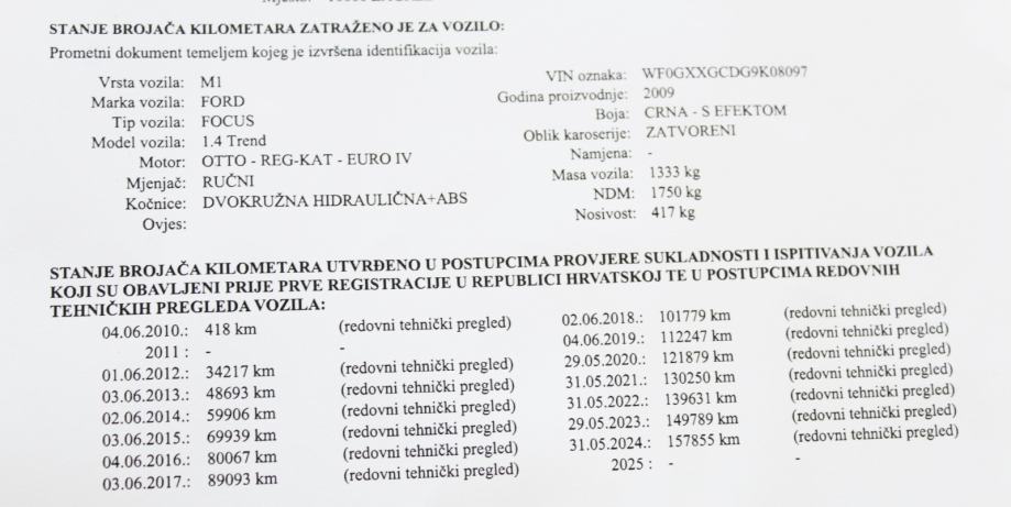 Jamstvo ispravnosti stanja broja prijeđenih kilometara uz službenu ovjeru tvrtke