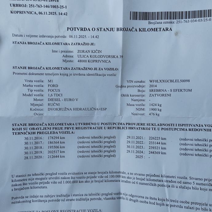 Ford Focus Karavan 1,6Tdci, 2014.g, REGAN God. DANA!