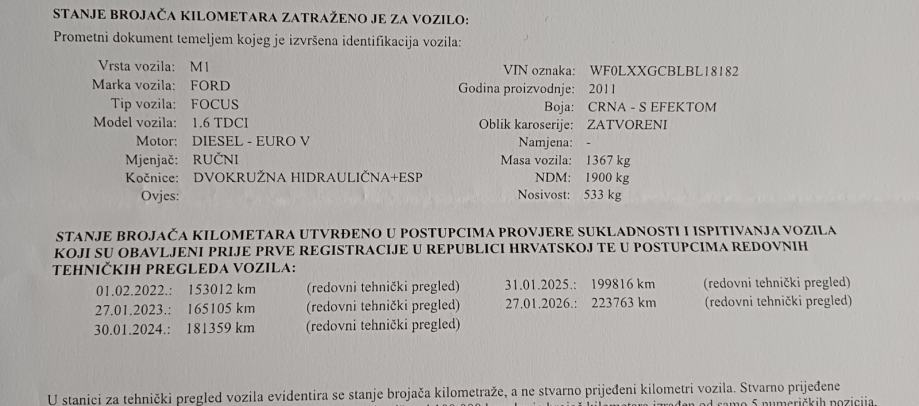 - prednji i stražnji diskovi s pločicama izmijenjeni na 180 tkm + prednje pločice na 210 tkm.