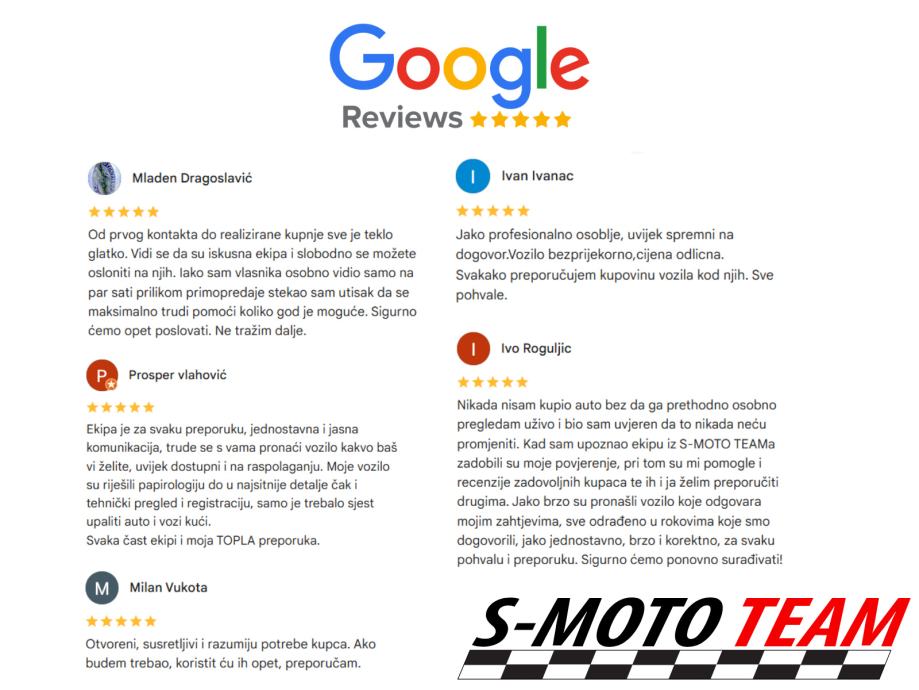 S-MOTO TEAM vodi računa o svojim kupcima i njihovom mišljenju te im se trudi osigurati maksimalno točne informacije i sadržaje oglasa kao što je cijena, oprema i slično. Unatoč pažljivom unosu podataka zadržavamo pravo na pogreške u tehničkom opisu i tekstualnom sadržaju opreme vozila, a ukoliko dođe do istih bit će ispravljeni u najkraćem mogućem roku.