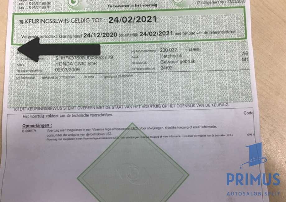 Unos Belgija.Potvrda kilometraze sa Belgijskog tehnickog pregleda.