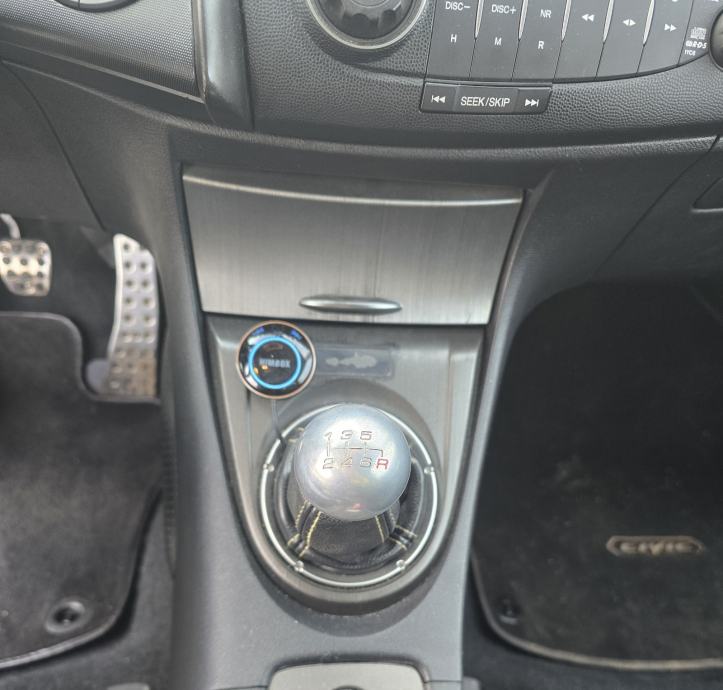 Od opreme posjeduje panoramu, xenon svijetla, dvoozonska klima, usb-aux-12v utičnice u naslonu za ruke, senzor za kišu i svijetla, tempomat, kožni mf volan, stražnji parking senzori, prednje osvijetljenje nogu, orginal stražnji Type R spojler, orginal 17" alu felge (lakirane u crno) sa all seasson Hankook gumama. Na autu je sve tvornički osim bluetooth-a koji je naknadno ugrađen.