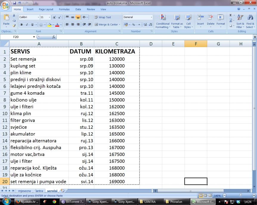 - Prijeđeni kilometri