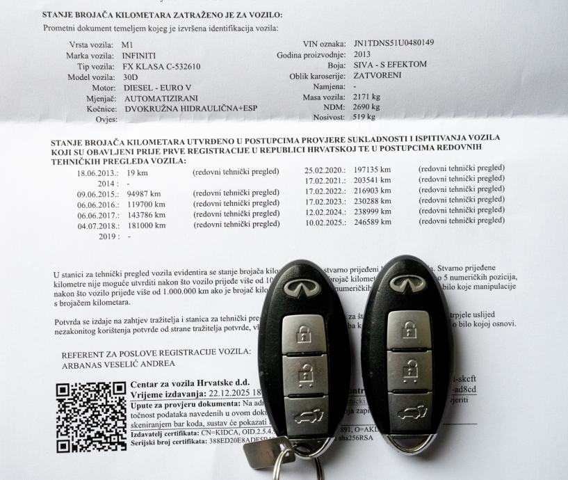 INFINITI FX 30D AWD aut.-tipt reg.do 03/2026g. Kupljen u HR. Servisna.
