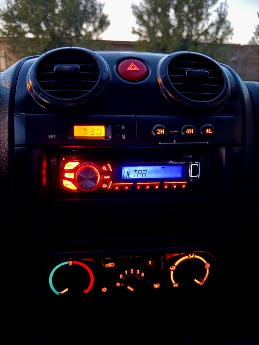 DODATNA OPREMA: Sanduk u tovarnom prostoru + komplet obloga tovarnog prostora + kuke za vezanje tereta, Alu felge 16”, klima, Pioneer USB/AUX/CD player, el. podizaci stakala, centralno zakljucavanje, el. podesavanje retrovizora, putno racunalo, ABS, ESP, senzor vanjske temperature, 2x airbag, el. paket, servo, bocno otvaranje straznjih stakala, itd...