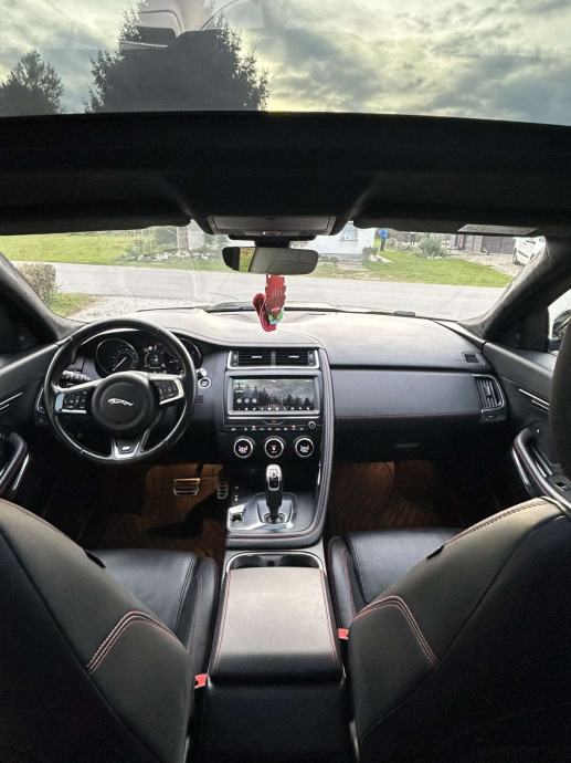 Ima full opremu, R Dynamic, head up, automatik, 4x4, panorama krov, grijane siceva, adaptivni tempomat, grijanje siceva, kuka, Keyless otključavanje, kamera, električna sjedala, kožna sjedala prešivena crvenim koncem ,original Jaguar R20 felge sa Michelin gumama, električno otvaranje prtljažnika,F1 mjenjač, uglavnom sve moguće što Jaugar u tom modelu nudi.