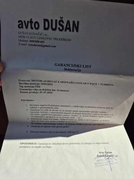 Dozvoljavam pregled u bilo kojem servisu po vašem trošku
