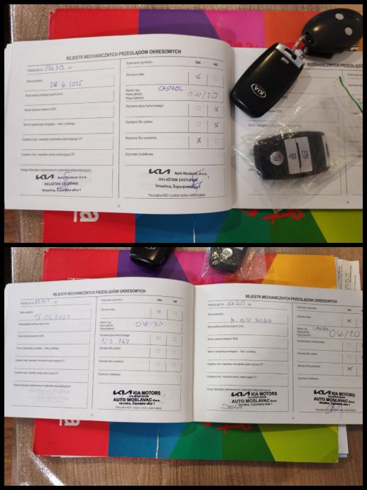 Dva ključa. Servisna knjižica. Računi servisa. Potvrde o kilometrima.