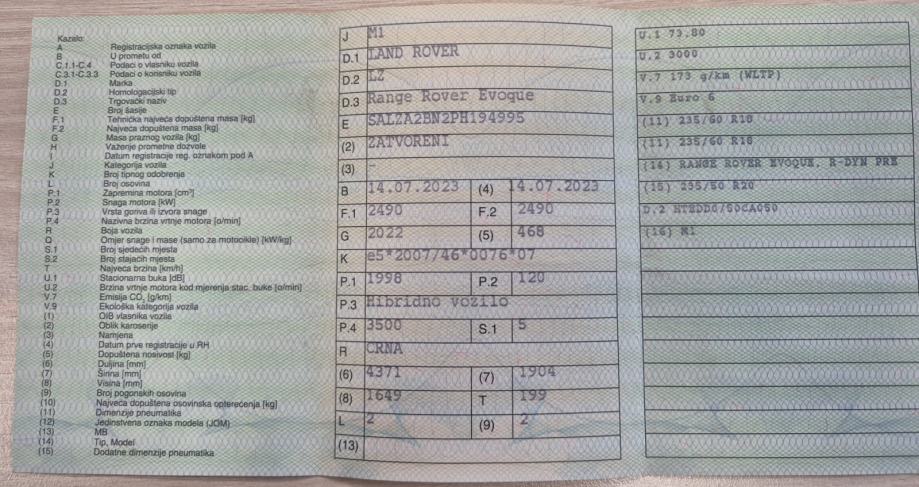 Prodajem rabljeno vozilo: Land Rover Range Rover Evoque