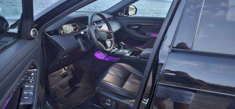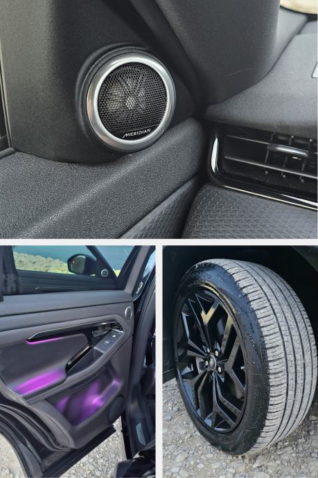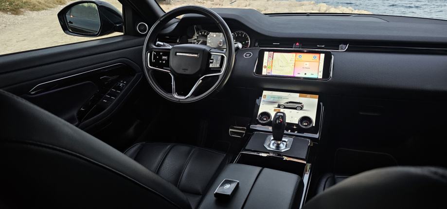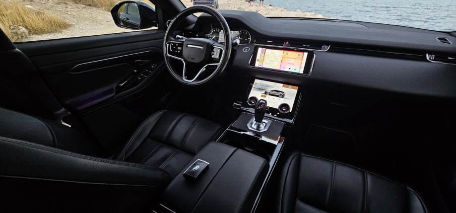 Land Rover Range Rover Evoque SE 2021. s BLACK edition paketom opreme s bogatim dodatnim funkcijama. Automobil je prešao 64000 km (auto je moj, vozi se svakodnevno – moguća manja odstupanja). Ne zahtijeva nikakve servise, sljedeci redovni servis tek za godinu dana (izmjena ulja i filtera) Registriran do 09/2026! Unutrašnjost očuvana kao nova.