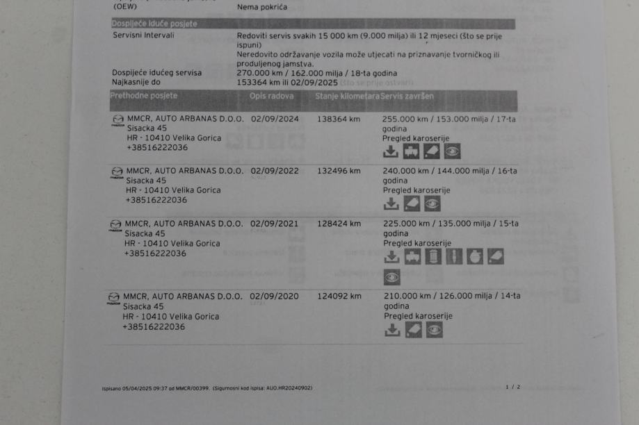 Apsolutno svi servisi, svake godine, neovisno o kilometrima su rađeni u Mazdi Arbanas.