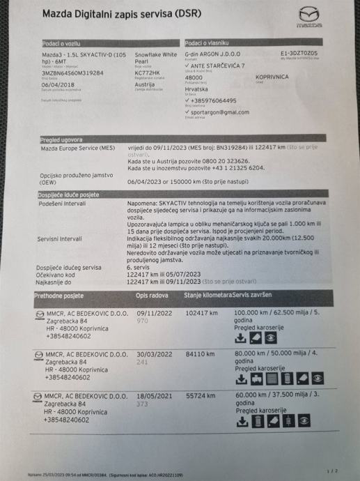 Do sada su na vozilu odrađena sedam servisa, svi u ovlaštenom Mazda ovlaštenom servisu.