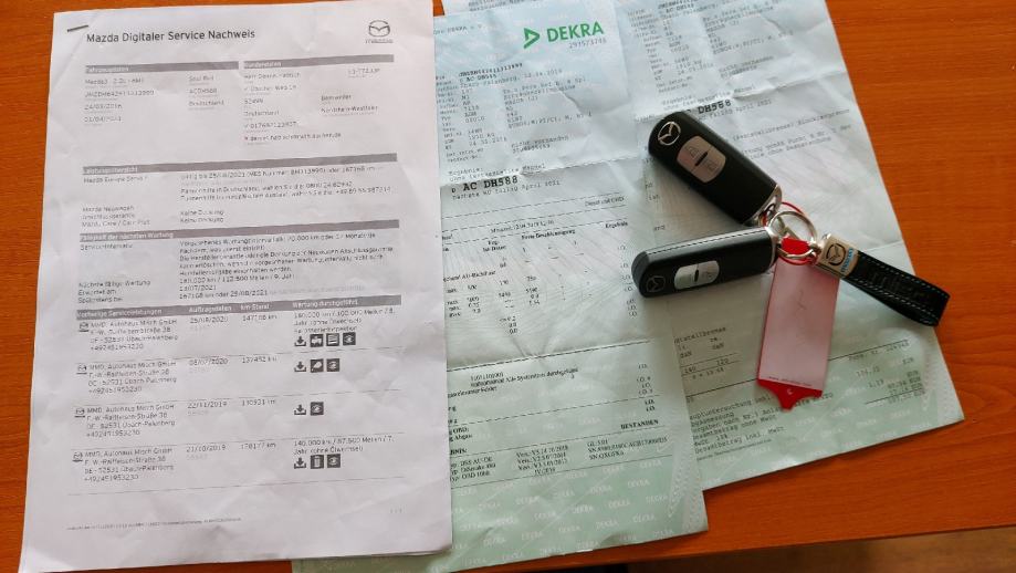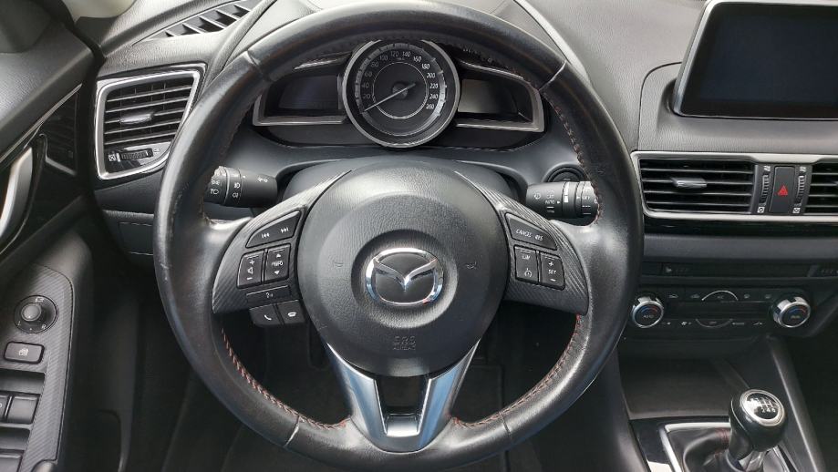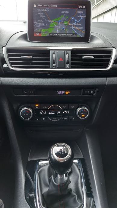 Od opreme ima sljedeće: Trokraki kožni multifunkcionalni volan proštepan crvenim koncep, tempomat, automatska svjetla, senzor za svjetlo, senzor za kišu, Mazda multimedija, upravljanje multimedijom pomoću joysticka, Navigacija, Bluetooth, handsfree, radio, CD, DVD, Aux, USB× 2, automatska dvojna klimatizacija, grijanje sjedala, sportska sjedala, podešavanje vozačevog sjedišta po visini i dubini, naslon(i) za ruke, kožni vozačev naslon za ruku, električno podešavanje stakala, zatamnjena stakla, elektr. podešavanje retrovizora, sklapanje retrovizora, ABS, ESP, RVM( Rear Vehicle Monitoring)--> upozorenje za mrtvi kut u retrovizoru, nadzor pritiska u pneumaticima, Start&Stop system, kožni mjenjač s crvenim koncep ( 6 brzina), parking senzori, maglenke, LED/ xenon svjetla, prilagodljiva svjetla, alu naplatci 16' , obaranje zadnjeg reda sjedišta, putno računalo, ISOFIX( sustav vezanja sjedalica za djecu, alarm, blokada motora, centralno i daljinsko zaključavanje, itd,....