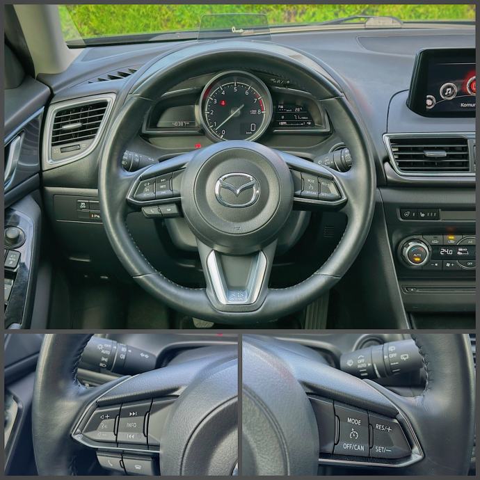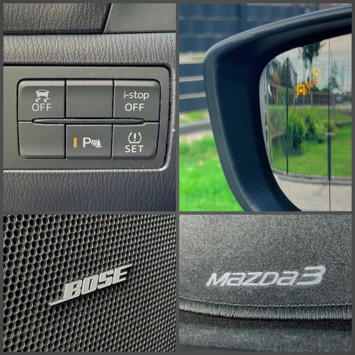 - LED prednja i stražnja svjetla, LED adaptivni farovi, Carplay i Anroid Auto, Head-Up Display, BOSE Sound System, Prednji i stražnji parking senzori, Parking kamera, Tempomat, Original Mazda - Alu felge 18", Sustav pomoći vozaču: asistent za duga svjetla, Original Mazda, Sustav pomoći vozaču: pomoć u prometnoj traci (praćenje traka), Hill holder, Zaslon u boji, Tvornički zatamnjena bočna i stražnje staklo, Grijanje prednjih sjedala, Komande na volanu, RVM - Senzor mrtvog kuta (na retrovizorima), Volan (sportski/kožni, 3 kraka), Audio kontrola na volanu, Automatska svjetla, Senzor za kišu, Automatska dvozonska klima, Svjetla za maglu, Električno podešavanje retrovizora, Grijanje retrovizora, Električni podizači stakala, Putno računalo, Podesivi stup upravljača, Sustav kontrole tlaka u gumama, Naslon za ruku (prednji+stražnji s držačem za čaše), Unutarnje ogledalo s automatskim zatamnjivanjem, Komplet za popravak guma, Niska emisija u skladu s emisijskim standardom Euro 6, Kožna ručica mjenjača, ISOFIX sustav dječjih sjedala, Rolo zavjesa stražnjeg stakla, Preklapanje stražnjih sjedala, Svjetlo pokazivača smjera integrirano u vanjsko ogledalo, Bluetooth sučelje, Univerzalno sučelje (USB / iPod / AUX veza), itd..